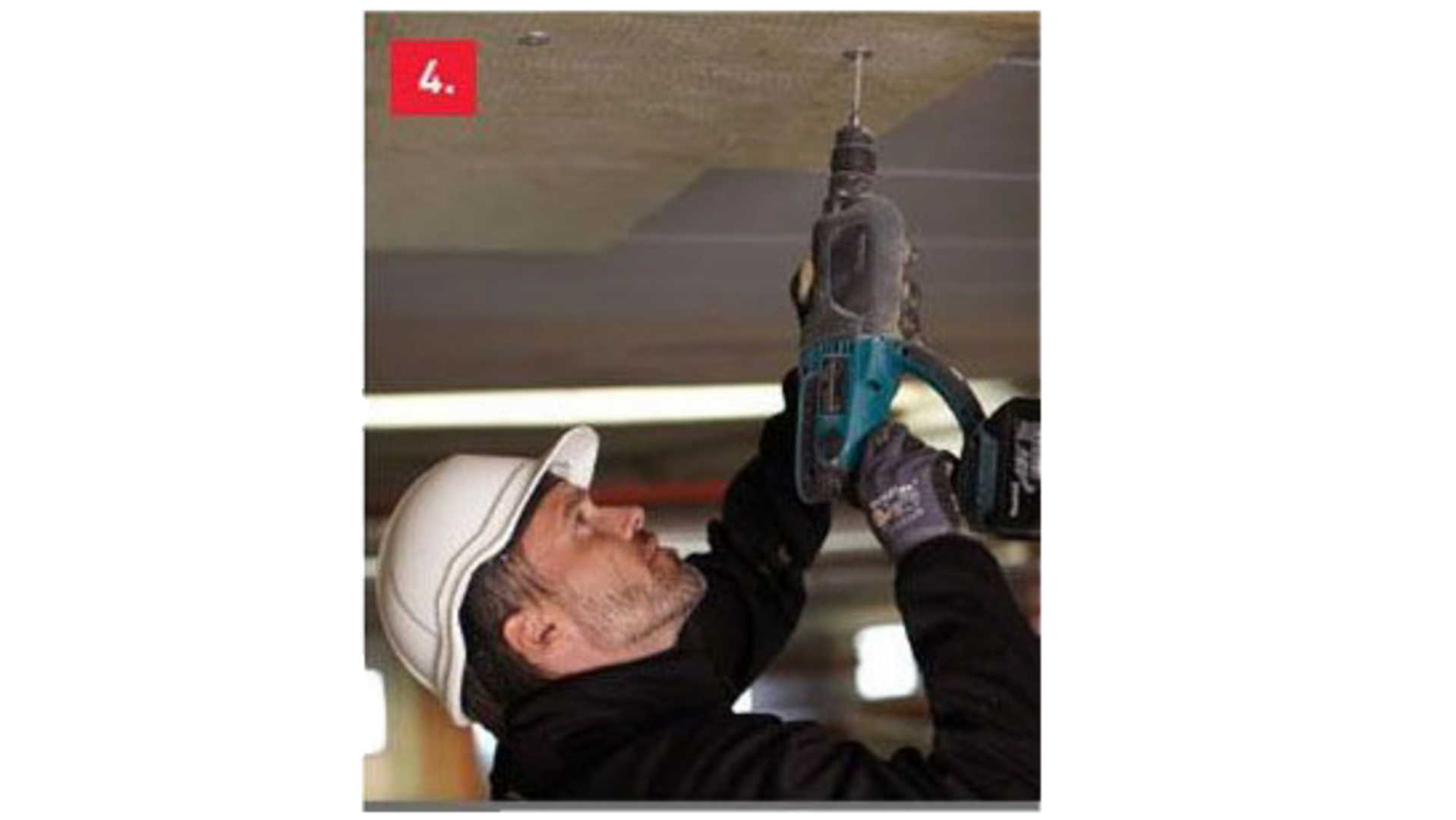 Conlit 150 monteras på betonghåldäck med expanderspik. Det är ett effektivt alternativ till limmetoden vid arbete vid låga temperaturer.